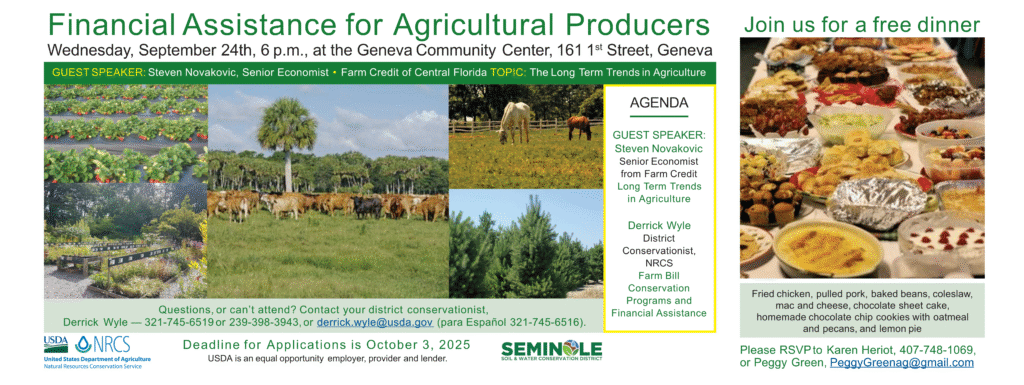 The Seminole Soil and Water Conservation District’s mission is to provide resources, planning, assessment, assisting citizens to apply conservation and preservation technology, and to educate the citizens in these technologies.